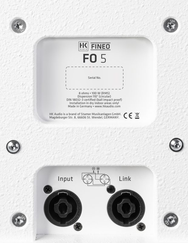 Tất cả các loa FINEO đều đạt tiêu chuẩn chống va đập. Do đó, chúng đáp ứng các yêu cầu nghiêm ngặt của tiêu chuẩn Đức về cơ sở thể thao (DIN 18032-3). Thùng loa được chế tạo cực kỳ chắc chắn. Lưới bảo vệ kiên cố và các thanh gia cố bằng thép bổ sung giúp loa chống chịu được những tác động cơ học lớn nhất.